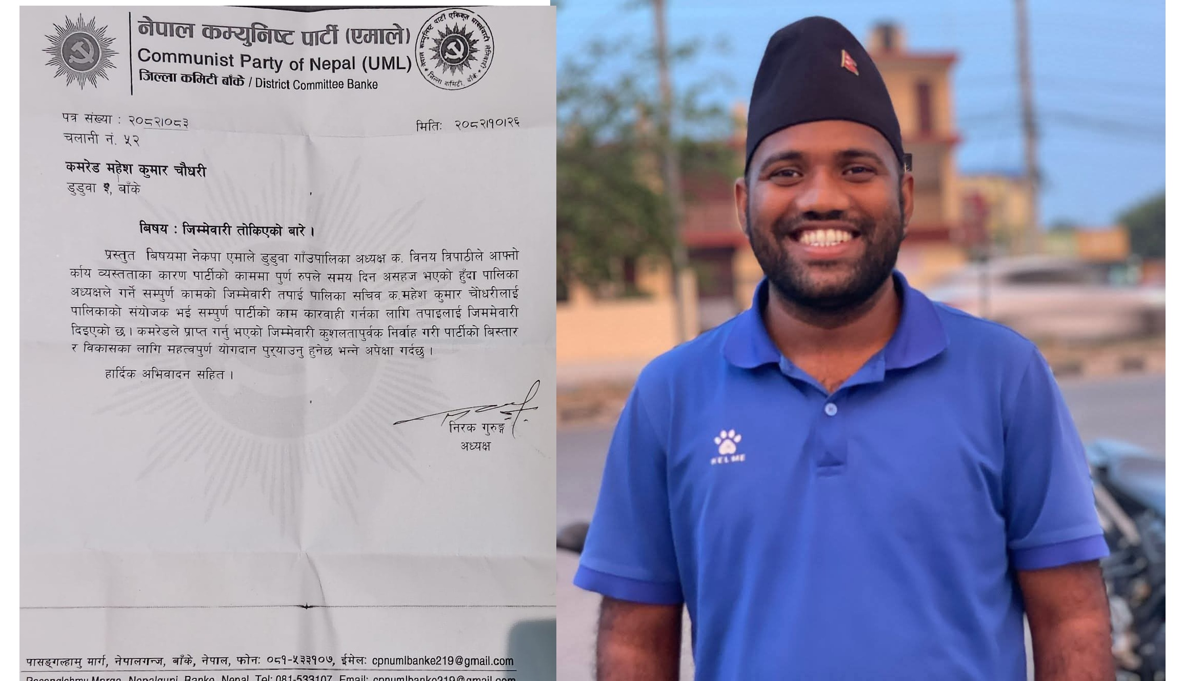 डुडुवा (बाँके) : बाँके निर्वाचन क्षेत्र नम्बर–२ का नेपाली कांग्रेसका उम्मेदवार शुधान्सु कोइरालाले मतदातासंग भेटघाट तथा घरदैलो अभियान तीब्र बनाएका छन् । उनले निर्वाचन क्षेत्र अन्तर्गत नेपालगञ्ज उपमहानगरपालिका र डुडुवा गाउँपालिकाका विभिन्न गाउँ–टोलका मतदाताहरुसंग भेट्न घरदैलो गरि रहेका छन् ।… विस्तृतमा