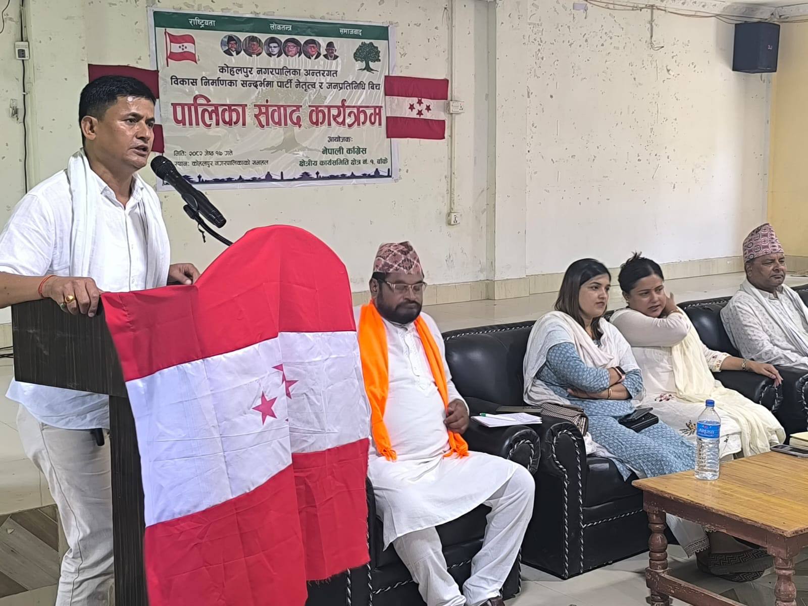 कोहलपुर (बाँके) : बाँके निर्वाचन क्षेत्रनं १ नेपाली कांग्रेस बाँकेको आयोजनमा विकास निर्माणका सन्दर्भमा पार्टी नेतृत्व र जनप्रतिनिधिबीच संवाद विषयक अन्तरसंवाद कार्यक्रम कोहलपुर नगरपालिकामा सम्पन्न भएको छ ।