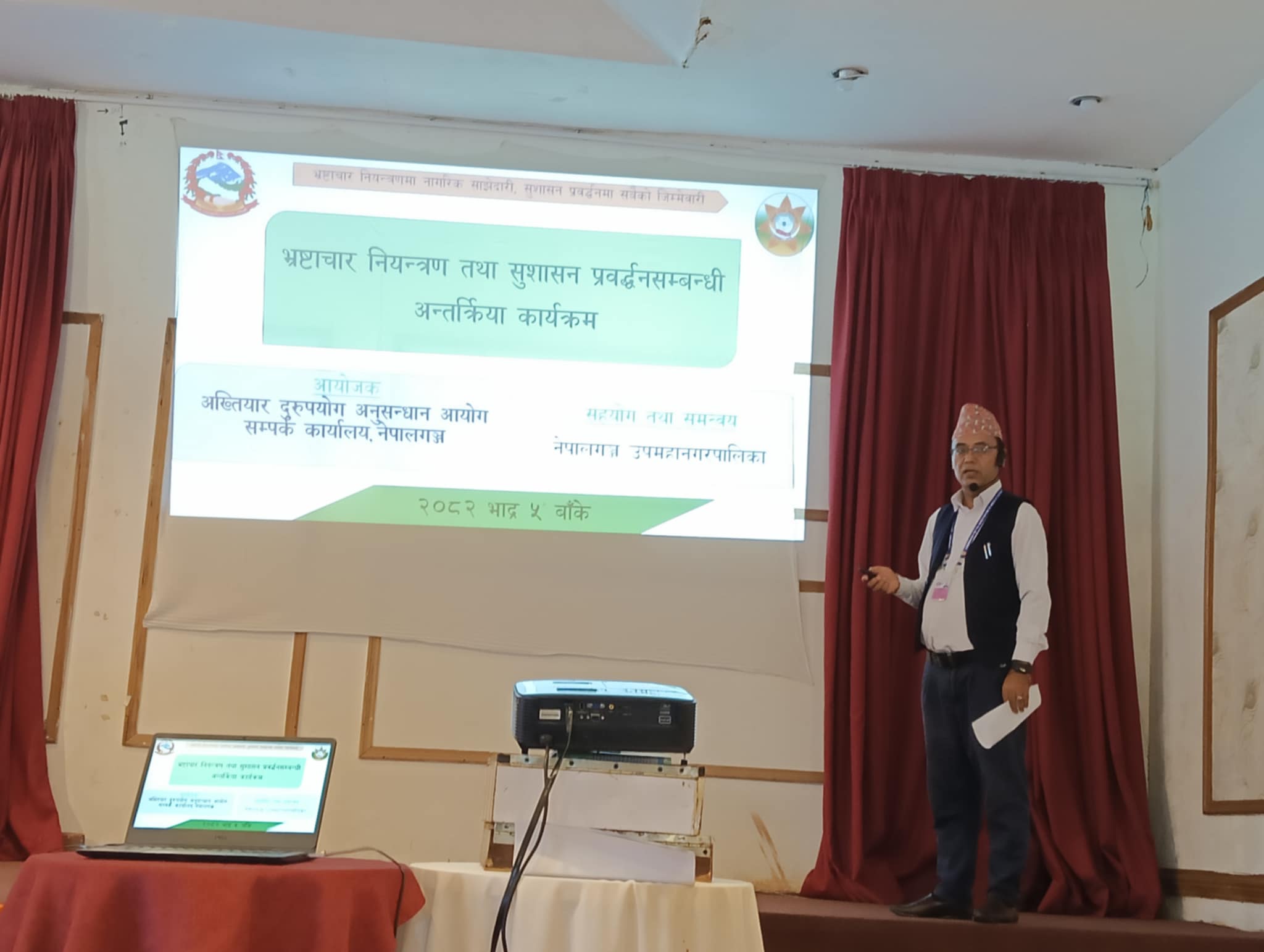 अख्तियार दुरुपयोग अनुसन्धान आयोगको कार्यालय बुटवल, सम्पर्क कार्यालय नेपालगञ्जको आयोजना एवम् नेपालगञ्ज उपमहानगरपालिकाको सहयोग तथा समन्वयमा सम्पन्न कार्यक्रममा नेपालगञ्जका नगर प्रमुख प्रशान्त विष्टले सुशासन प्रबद्र्धनका लागि प्रतिबद्ध रहेको बताउँदै सार्वजनिक पद धारण गरेका ब्यक्तिहरुको नियत सफा र आचरण शुद्ध हुनुपर्नेमा जोड दिए ।
