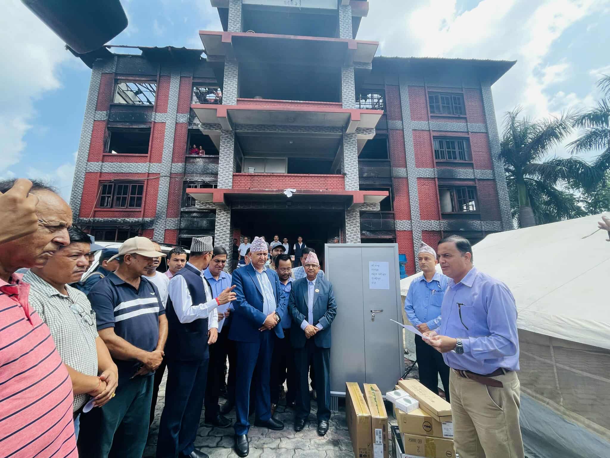 राज्यलाई कमजोर पार्ने गरी भएको आगजनीले कसैलाई फाइदा नहुने बताउदै उनले भने‘टेन्ट टाँगेरै भएपनि सेवा अगाडि बढाउनुपर्छ भनेर हामीले भनिरहेका छौं । सबै कार्यालयहरुमा पुगेर कर्मचारीहरुको मनोबल उठाउने र सेवाग्राहीलाई कसरी सेवा पु¥याउन सकिन्छ भन्ने छलफललाई पनि केन्द्रित गरेर अघि बढिरहेका छौं ।’