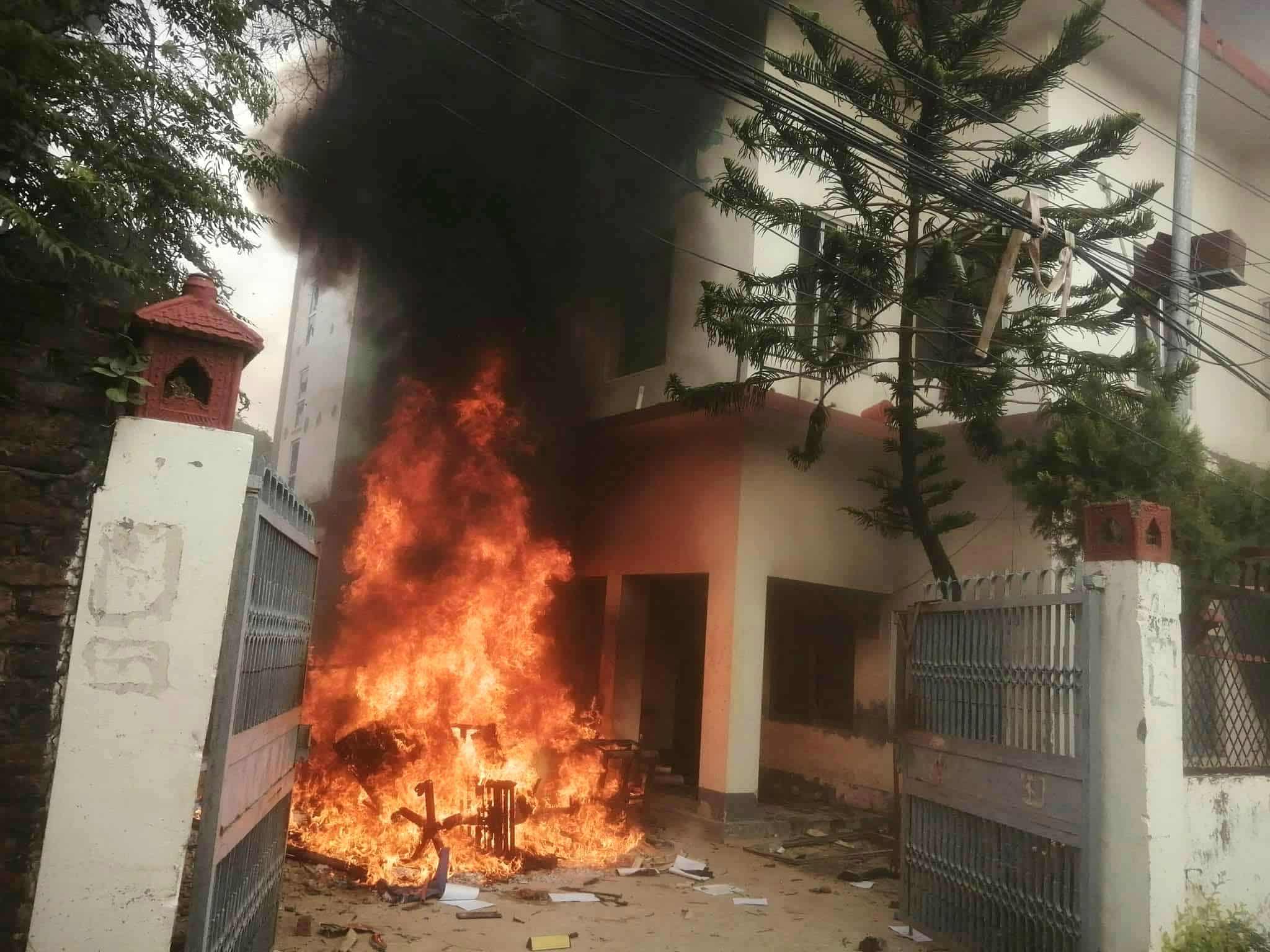 मंगलबार दिउसो प्रदर्शनकारीको समूहले दुबै पार्टी कार्यालयमा आगजनी गरेको हो । उनीहरुले पुष्पलाल चोकमा रहेको पुष्पलालको सालिक तोडफोड गरेका हुन ।