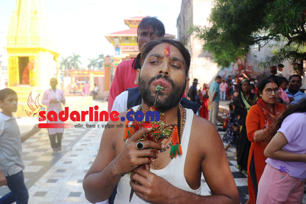 नेपालगञ्जको बागेश्वरी मन्दीरमा जिब्रो छेडेर दर्शन गर्नेको भिड