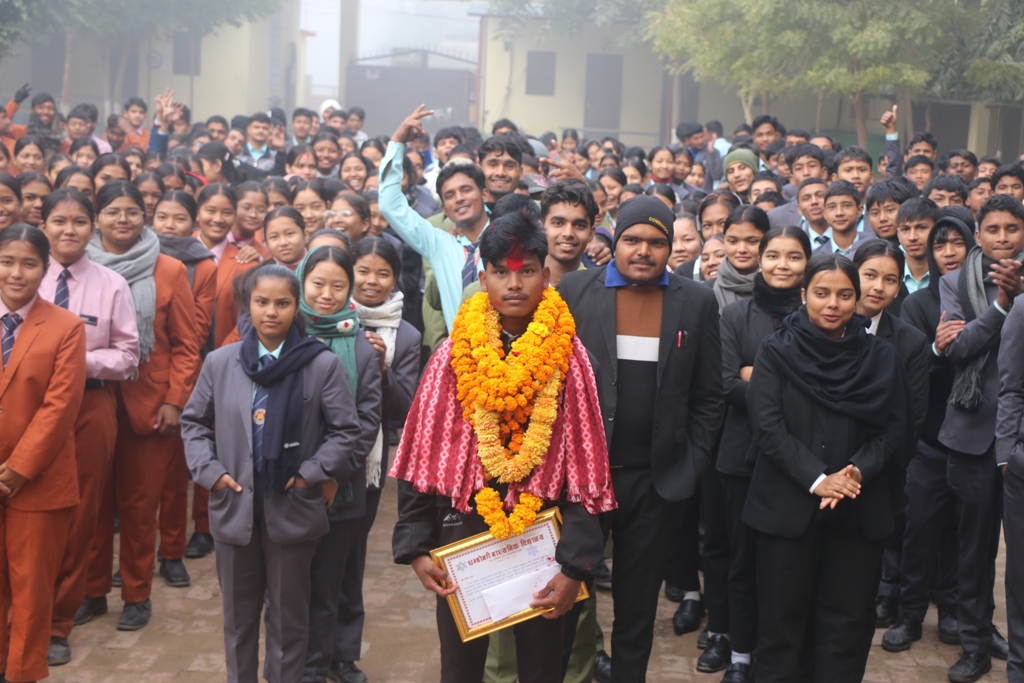 बाह्रबर्दिया–११ अकलघरुवा स्थायी बासिन्दा उनी एईई किसान मावि बाह्रबर्दियाबाट दिएका थिए । विद्यालयामा कार्यक्रम गरी आफुलाई सम्मन गरी आफ्नो हौसला बढाएको भन्दै शिक्षक तथा विद्यार्थीलाई धन्यबाद दिएका थिए ।
