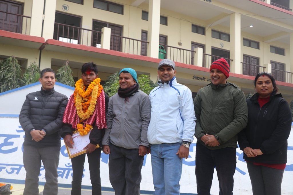 बाह्रबर्दिया–११ अकलघरुवा स्थायी बासिन्दा उनी एईई किसान मावि बाह्रबर्दियाबाट दिएका थिए । विद्यालयामा कार्यक्रम गरी आफुलाई सम्मन गरी आफ्नो हौसला बढाएको भन्दै शिक्षक तथा विद्यार्थीलाई धन्यबाद दिएका थिए ।