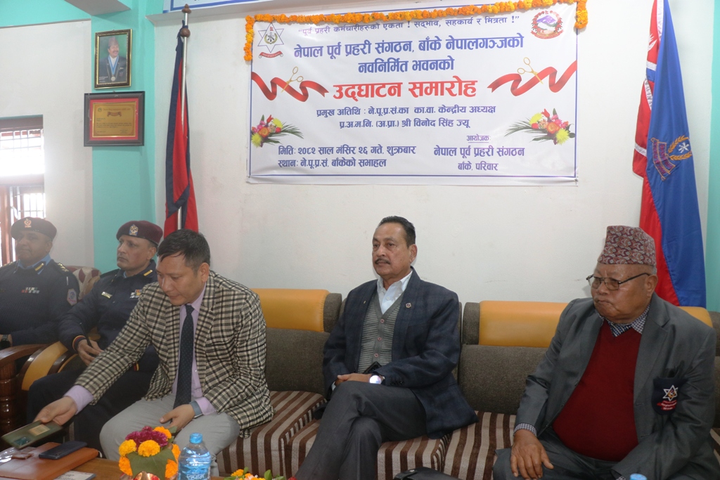 नेपालगञ्ज : वाहालबाला प्रहरी सहर नै अझै पनि आफुहरु देशको सेवा गर्न सक्षम रहेको अवकाश प्राप्त प्रहरीहरुको भनाई छ । नेपाल पूर्व प्रहरी संगठन बाँकेको नवनिर्मित भवनको उद्घाटन कार्यक्रममा सो कुरा बताएका हुन ।