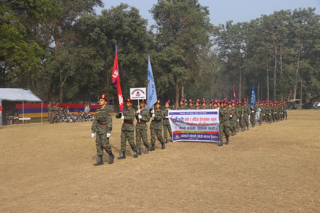 यसक्रममा नेपाली सेनाको बज्रदल गणको आयाजनामा ईम्प्यनल्ड विद्यालयहरुको सहकार्यमा चौथो ईम्प्यानल्ड स्कुल रनिङ्ग शिल्ड प्रतियोगिता आजदेखि सुरुवात भएको छ ।