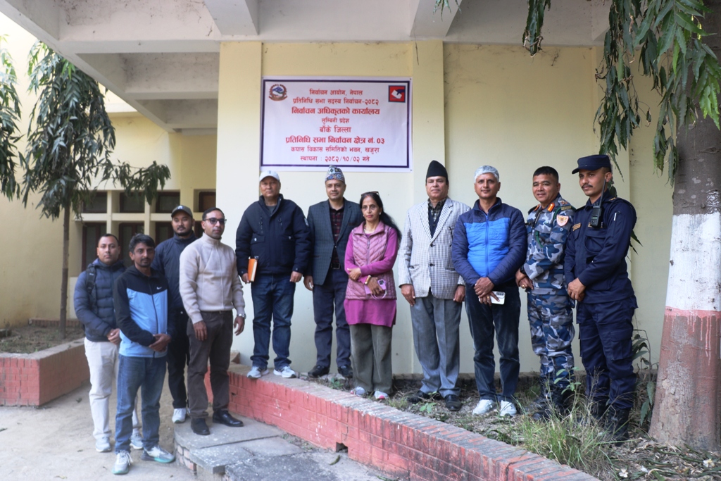 नेपालगञ्ज : बाँकेका तीनै वटा निर्वाचन क्षेत्रमा आगामी फागुन २१ गते हुने प्रतिनिधिसभा सदस्य निर्वाचन २०८२ का लागि निर्वाचन अधिकृतको कार्यालय स्थापना गरिएको छ ।