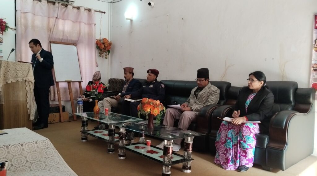 कार्यक्रम उप-प्रमुख हुमा डिसीको स्वागत मन्तव्यबाट सुरु भएको थियो । जिल्ला समन्वय समितिका प्रमुख नित्यानन्द शर्माले संघीय व्यवस्थामा स्थानीय सरकार जनताको सबैभन्दा नजिकको सरकारका रूपमा स्थापित भएको बताए । प्रमुख जिल्ला अधिकारी विश्वप्रकाश अर्यालले समाजलाई सभ्य र समुन्नत बनाउने दिशामा यो महत्वपूर्ण उपलब्धि भएको उल्लेख गरे।